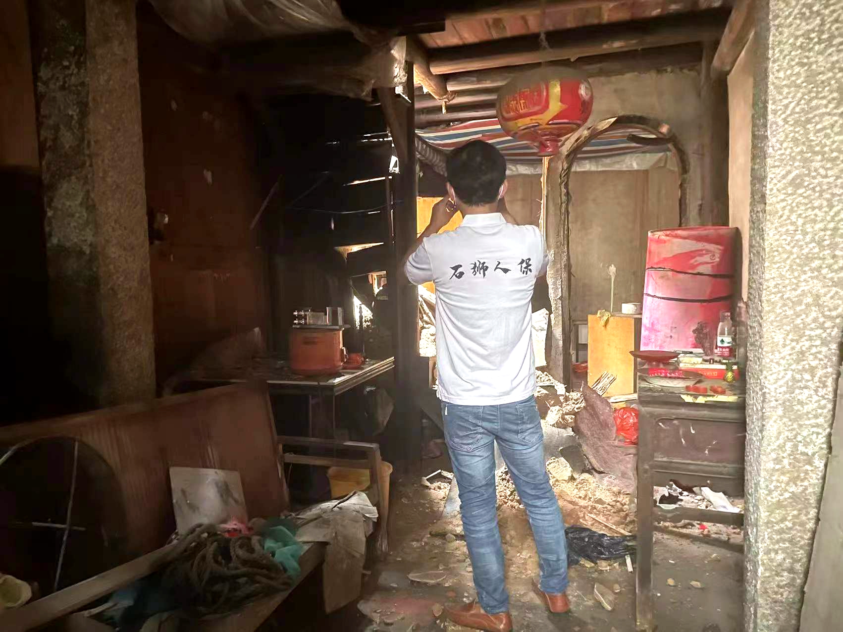 受灾农房多为土木结构的危房,墙体主要由土坯堆砌而成,屋顶由几根圆形木头架接而成。由于暴雨冲击,造成墙体坍塌,房屋受损严重。农网服务经理们在受损危房内进行仔细查勘,由于暴雨急流的冲刷,造成部分危房倒塌,农网服务经理只能攀爬才能进入房屋拍摄。由于很多村民对农房保险不了解,每到一户,农网服务经理都会详细、耐心地对受灾村民讲解农房保险的保障范围和理赔事宜。