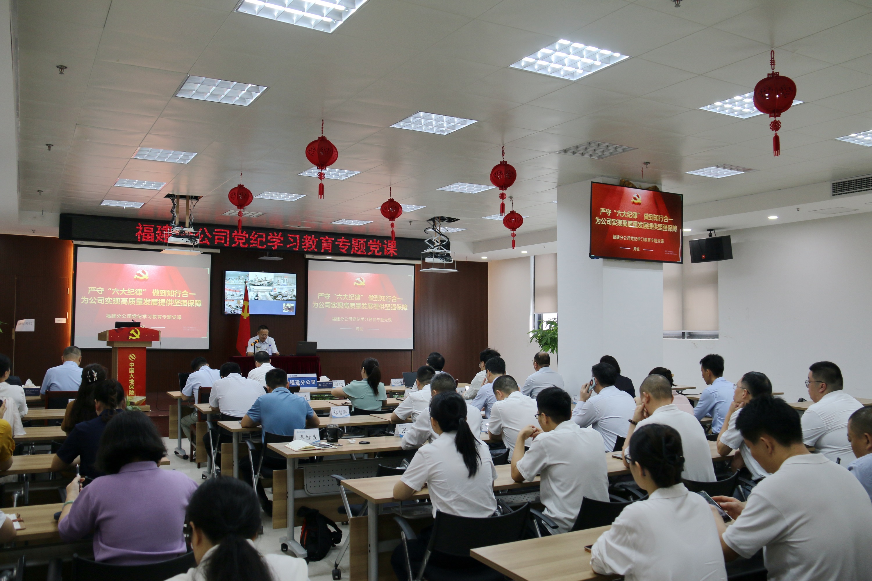 为推动党纪学习教育走深走实,7月1日上午,中国大地保险福建分公司党委举行党纪学习教育专题党课,分公司党委书记周铖讲授《严守“六大纪律” 做到知行合一 为公司实现高质量发展提供坚强保障》专题党课。