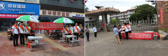 7月17-18日上午,连城国寿组织志愿者到连城县莲峰镇新华都超市门口及座落在连城县庙前镇的福建省龙岩市连发铝业有限公司厂区门口开展反洗钱知识宣传,为社区居民和企业职工进行普及反洗钱知识,现场为职工和过往群众讲解什么是反洗钱、洗钱的危害等知识,同时接受社区居民和职工和群众咨询,为社区居民、企业职工讲解反洗钱知识和保险知识。