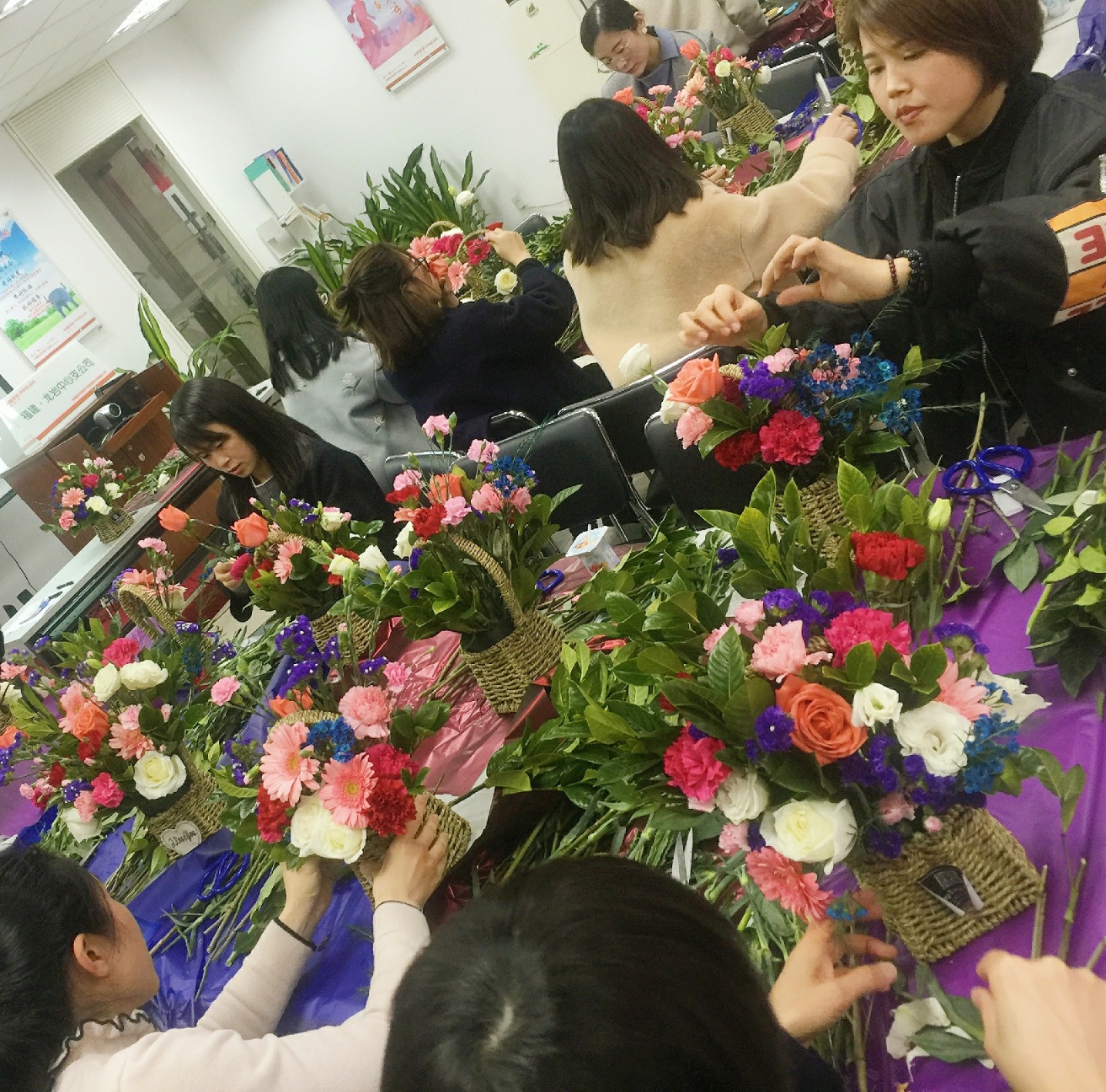 为纪念第109个国际“三·八”妇女节,丰富女性员工的文化生活,3月8日,平安产险龙岩中心支公司举办 “插花品芬芳,魅力平安人”主题插花沙龙活动。