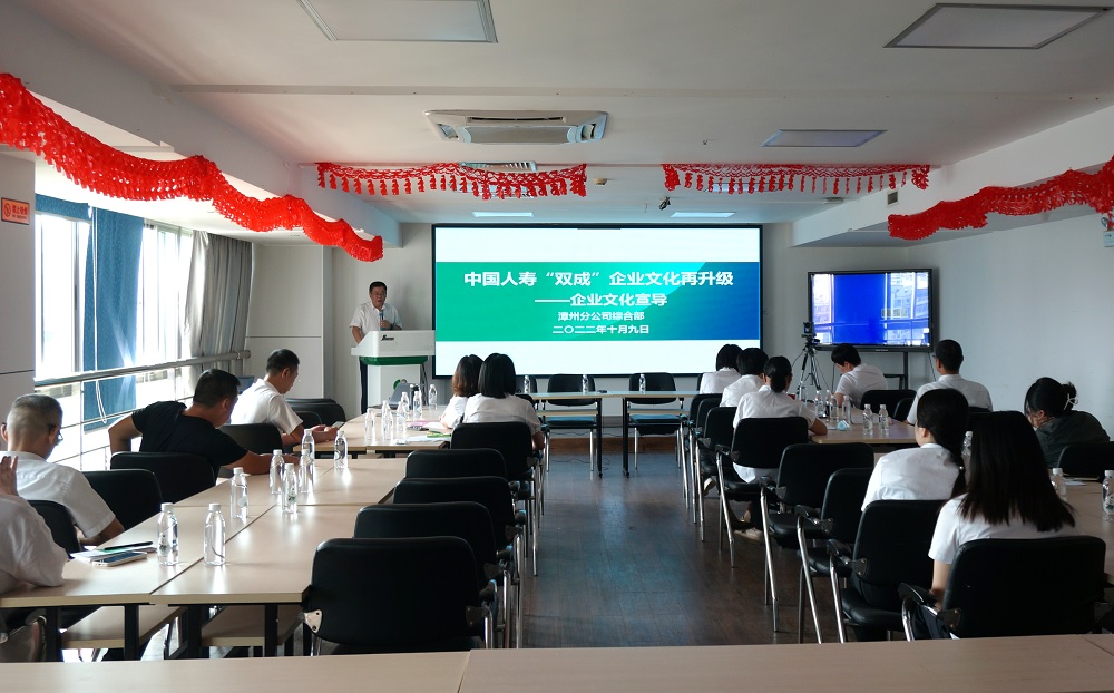 10月9日,中国人寿漳州分公司以“现场+视频”形式组织开展《中国人寿企业文化体系》(2022年版)宣导工作。市公司各部门负责品牌宣传、声誉风险管理工作相关岗位人员、城区各营业单位综合管理岗在主会场参会,各营业单位综合部主要负责人在分会场参会。