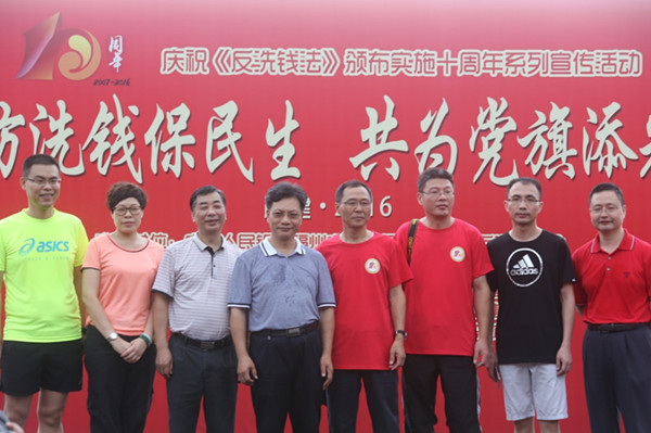 8月13日,由中国人民银行福州中心支行、福建省反洗钱协会主办,平安人寿福建分公司承办的“预防洗钱保民生,共为党旗添光彩”《中华人民共和国反洗钱法》颁布实施十周年系列宣传活动启动仪式暨反洗钱户外宣传活动在福州市国家森林公园成功举办。